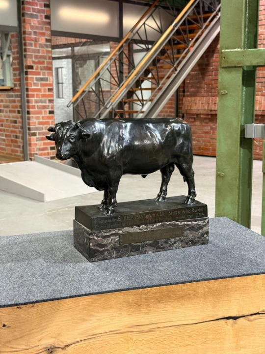 Dieses beeindruckende Bronzeporträt aus Bares für Rares vom 17.02.2025 zeigt das prächtige Zuchtstier „Blücher“, gezüchtet in Nettelburg.