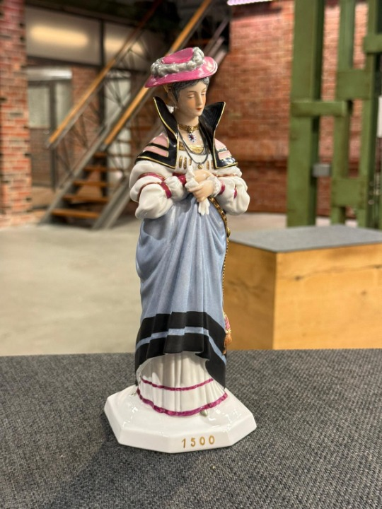 Diese Porzellanfigur aus Bares für Rares vom 29.01.2025 stellt eine elegante Modedame um 1500 dar.
